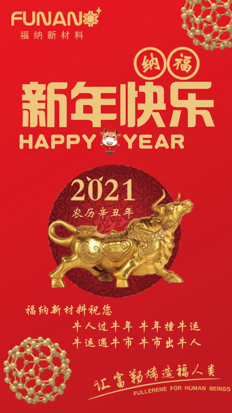 告別了不平凡的2020年,我們迎來了充滿機遇和挑戰(zhàn)的2021年!在此,感謝大家在過去一年里對福納新材料的支持與信任,同時也希望在新的一年里,福納新材料能繼續(xù)得到大家的關(guān)注及支持,福納新材料也將一如既往地為大家提供更優(yōu)質(zhì)的服務(wù)!正值牛年春節(jié)即將來臨之際,在此提前向各位新老客戶和廣大朋友們拜個早年!預(yù)祝大家新春愉快!財源廣進!牛年大吉!牛氣沖天!